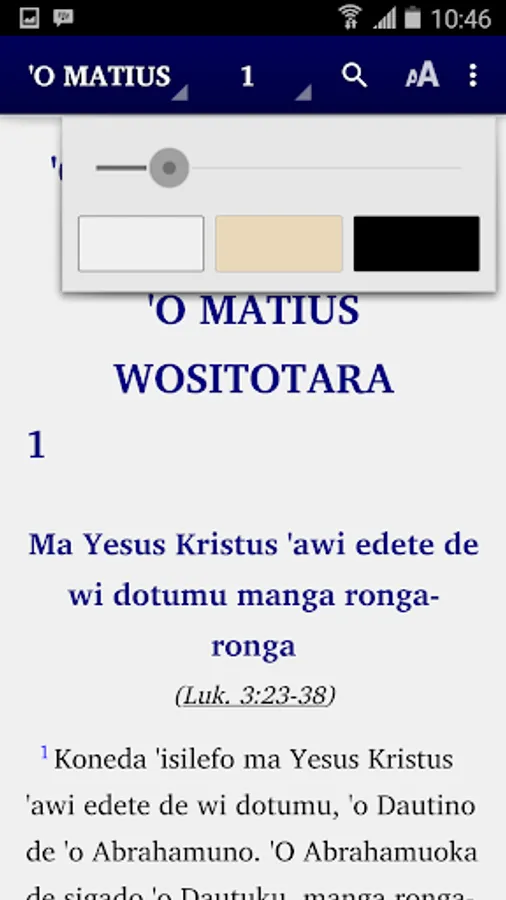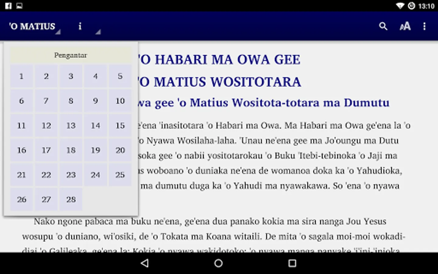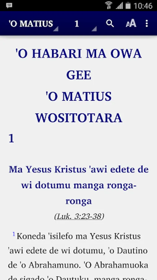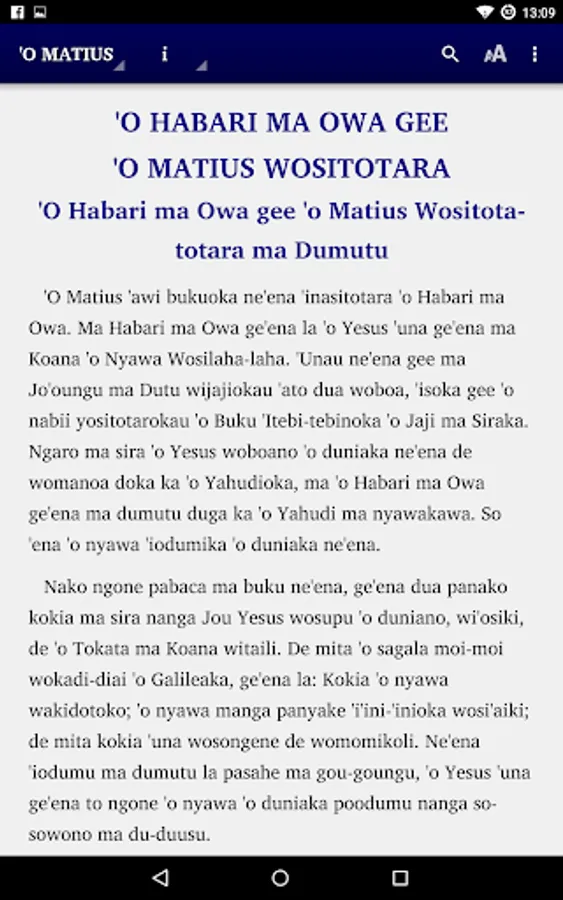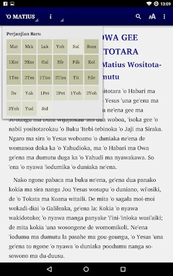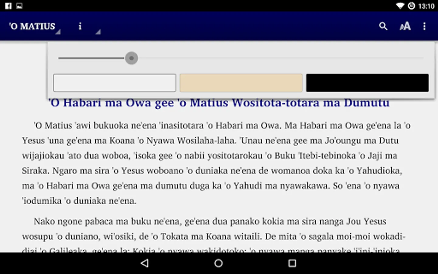 This is the language of the Bible app for Android Tabaru. This version brings the whole of the New Testament are 100% free.