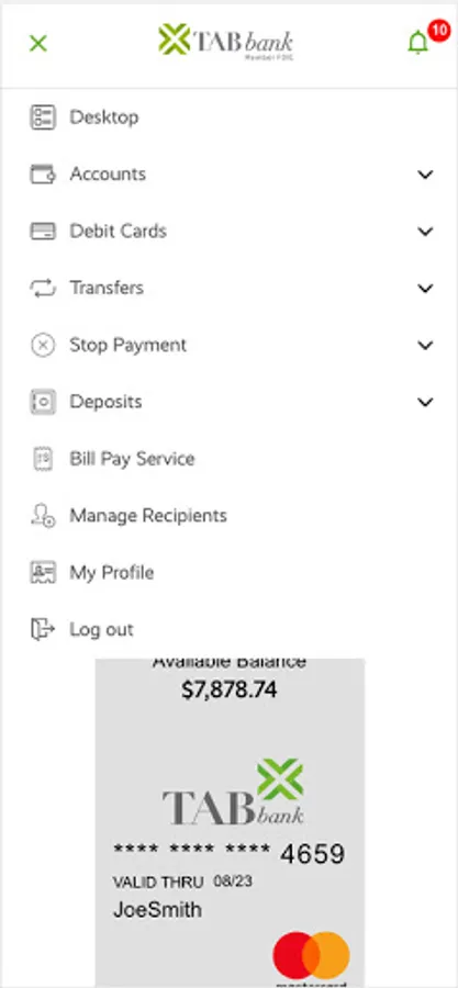 TAB Bank Mobile allows you to check balances, make transfers, and deposit checks (this version is only open to users who are registered account holders).