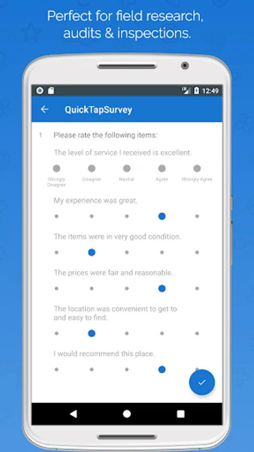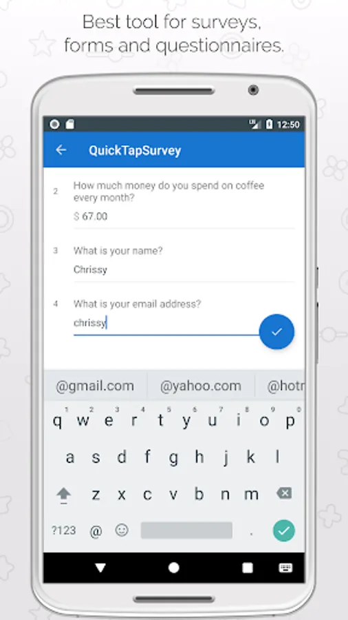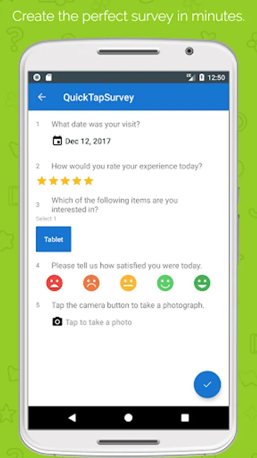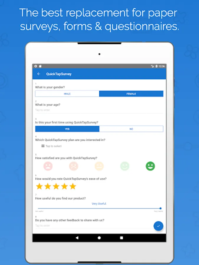Create beautiful surveys and forms in minutes! QuickTapSurvey is the only survey app that lets you capture data anywhere, even offline. It’s the perfect solution for customer feedback, research, lead capture, audits and interactive kiosks.