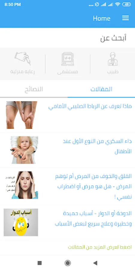 - Access to thousands of medical articles and health advices published by doctors in Arabic region.
