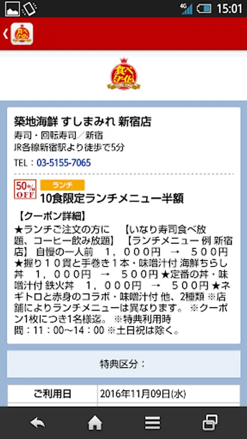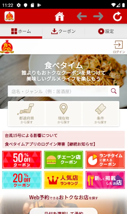 "食べタイムは「50%OFFクーポン」「チェーン店クーポン」「ランチタイムクーポン」など全国の飲食店を他にはない高い特典でおトクにお食事ができるグルメクーポンアプリです。