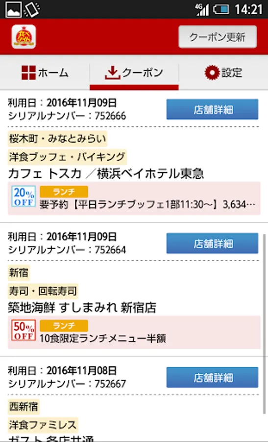通信環境が悪い場所でも、クーポンを画面に表示することができるとても便利な機能です。