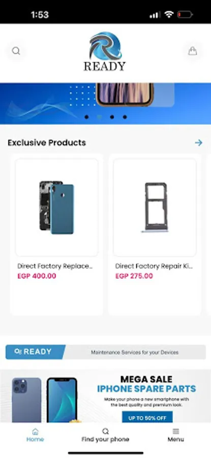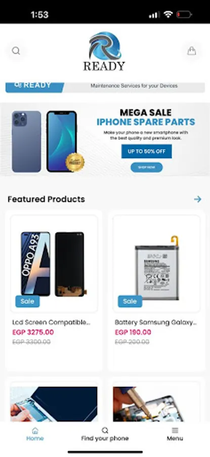Ready store app for all types of consumer electronic devices and their spare parts and accessories.