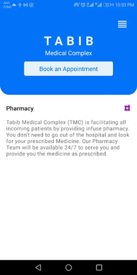 Tabib Medical Complex (TMC) App is specially designed for TMC , Where people can Gather Important information about hospital, specialties, laboratory, Ultrasound, services and all other facilities offered by Tabib Medical Complex.