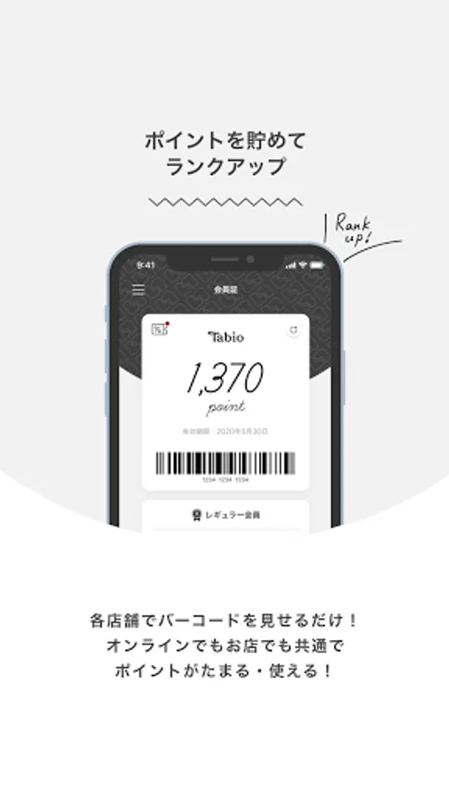 The Tabio app is a membership card app that can be used by all Tabio groups, including legwear stores such as socks stores, Tabio, Tabio MEN, and Tabio online store.