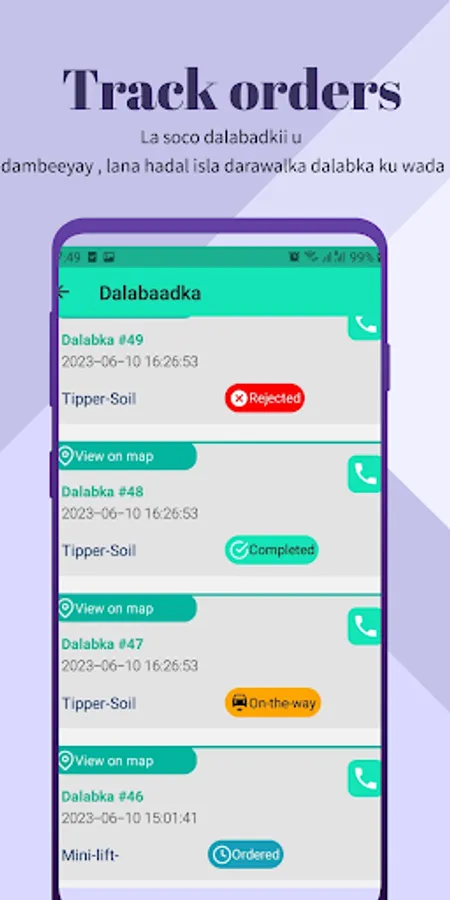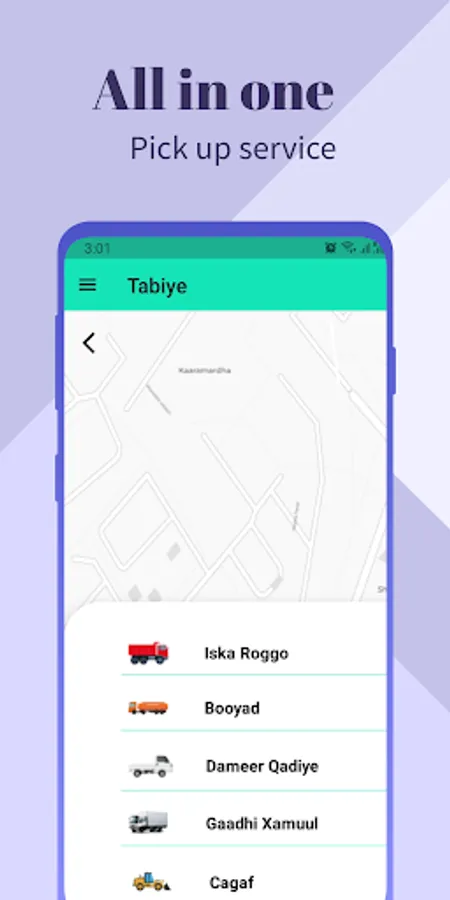 Adeega tabiye waxa uu ka caawinaya inaad Si fudud u dalbato adeegyada gawaadhida rarka alaabaha , booyadaha biyaha ,adeegyada cagafta ,gawaadhida xamuulka , gawaadhida rarka qalabka dhismaha iwm.