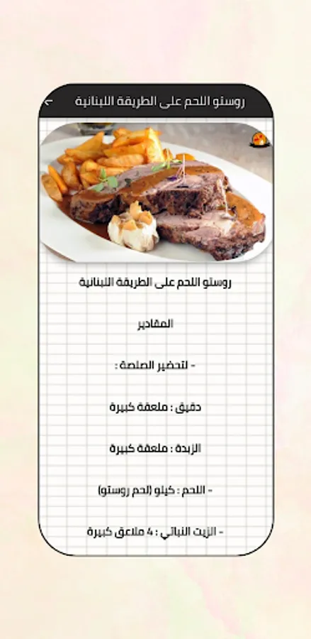 💖Lebanese food is considered one of the most delicious foods in the world thanks to its diversity and wonderful flavour. The "Lebanese Recipes" application offers you an opportunity to explore this rich heritage by presenting various recipes that include main dishes, appetizers, and desserts.