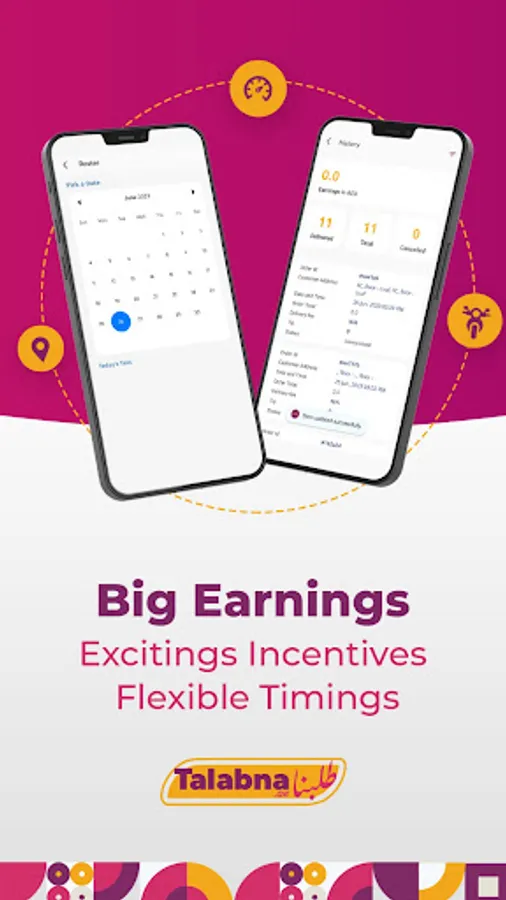Deliver More and earn more. the more orders you will deliver the more will earn, Flexible timings provided by the Talabna.