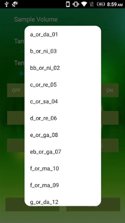Mobile Music Sampler is an application that plays pre-installed music samples like drum and percussion, which could be used for practicing your vocal or other musical instruments.