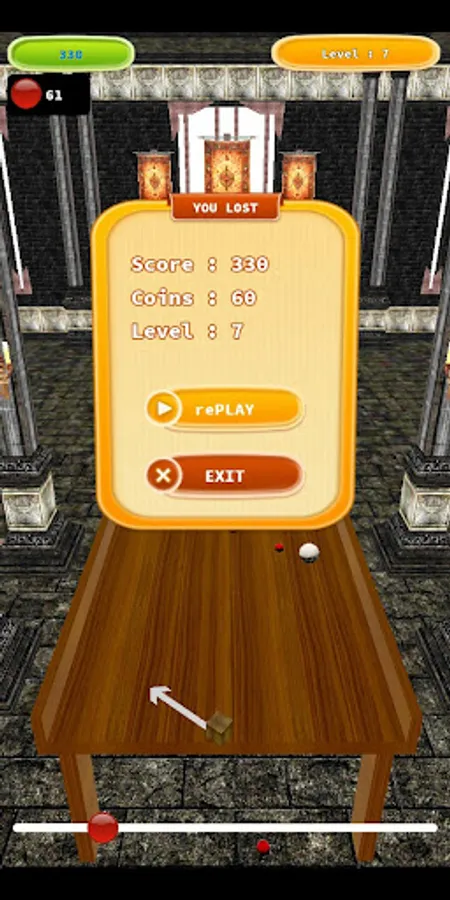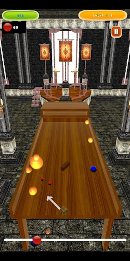 Produces enemy balls on the console at the other end of the table. Because the table is inclined, the balls roll towards your defense area. If you remove your finger from the screen after moving the pointer to the left and right, the ball will be thrown. You can throw more than one ball when you hit your finger more than once. The goal is to destroy the falling balls without falling. You lose the game when opponent balls fall off the table.