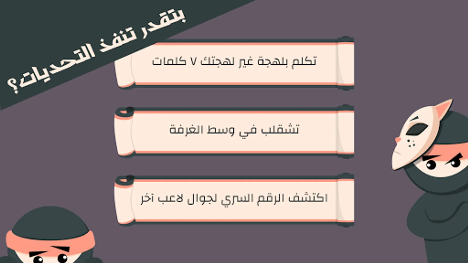 The game “Secret Challenge” has more than 100 funny challenges such as “find out what’s the passcode for a player’s phone”, dance a trendy dance from Tik-Tok and “Don’t let any other player touch the tissue box!”. Who is the smoothest Ninja in the group that can achieve all the challenges in secret without getting caught? Act normally as if you are hanging out to win! Play it now with your friends and family and live moments of laughter with failed attempts of doing the challenges.