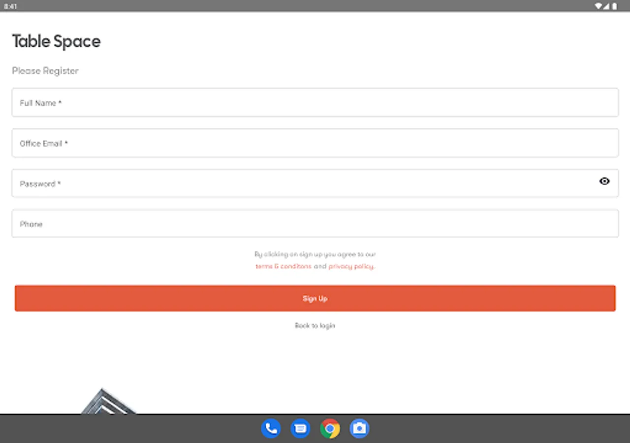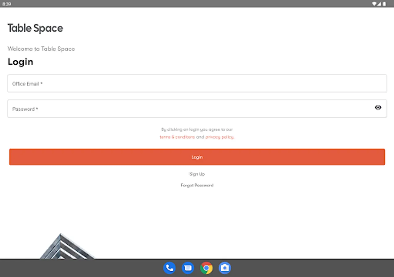 Table Space is designed around enhancing employee experience and reducing costs required to build and run traditional offices, Table Space app provides you with services that allows you to operate the managed offices. Table Space app allows for meeting room booking, work station booking, invite visitor, raise service request related to operations and call emergency team if required