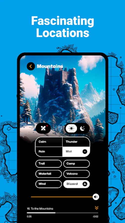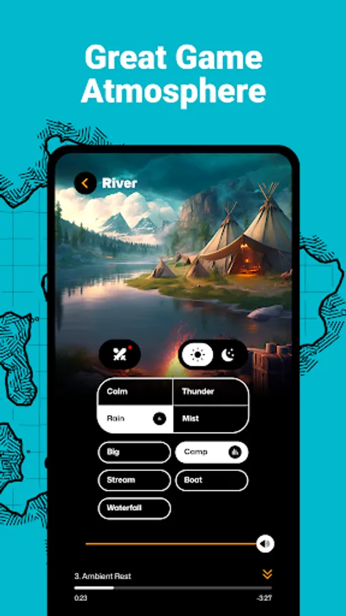 ● Four weather options as separate audio layers, with your choice saved during transitions between locations and scenes.