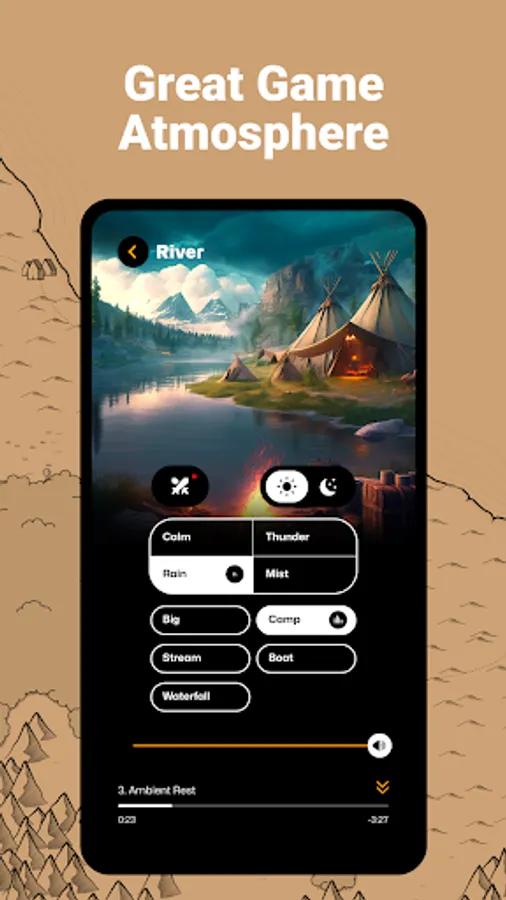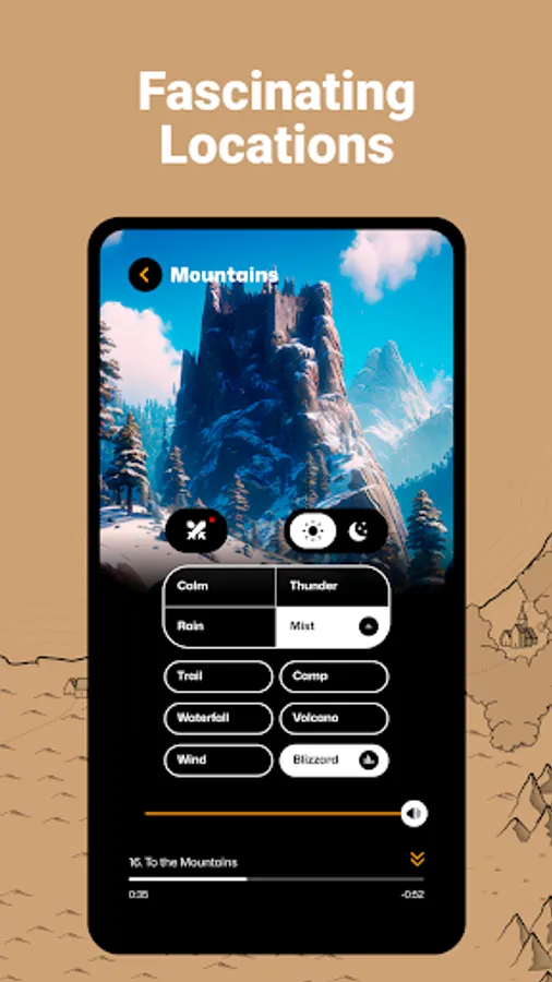 - Four weather options as separate audio layers, with your choice saved during transitions between locations and scenes.