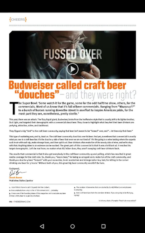 Finally a magazine that provides everything about the liquid that has taken the world by storm – Beer. Cooking, home brewing, reviews, humor, games, news, and all the good times associated with beer. There’s never a dull moment when beer is involved and there’s never a dull issue of Beer Magazine. Real reviews, real content, and keeping it real since 2007. Your tablet will thank you for finally having something other than games and pictures of cats.