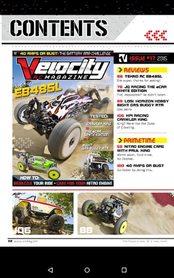 The World’s best selling digital magazine about Radio Controlled Cars. Reviews, tips, Pro advice, stunning action photography, video information, links to all the products tested and even a pinch of humour make Velocity RC Cars Magazine the #1 source for beginners or pro’s.