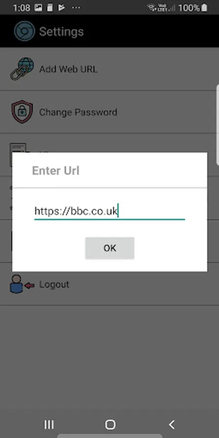 Lockdown any Browser URL in a KIOSK MODE. End user will have limited access to webpages. Device users cannot access android settings and other applications on the device.