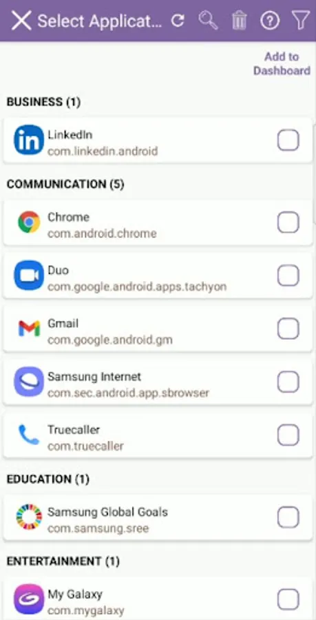 ▪ Per application usage statistics. Filter based on dates.