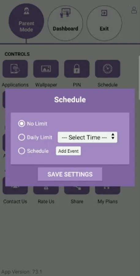 ▪ Set daily time limit for device usage. Parents can extend usage time with password.