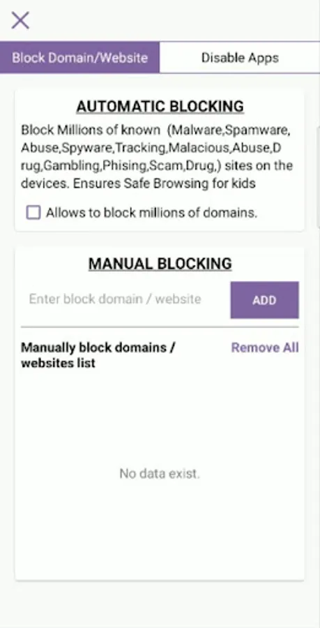 ▪ Blocks playstore access.