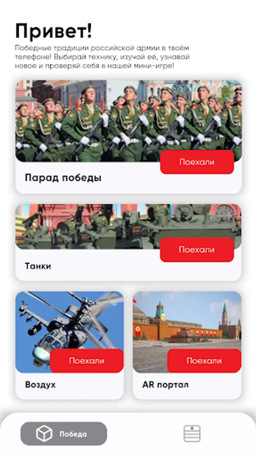 This year, Russia and the whole world celebrate the 75th anniversary of the Great Victory. Our country played a key role in it. And the Russian army to this day keeps the heroic traditions of its predecessors. Thanks to this application, you have the opportunity to get acquainted with the best modern samples of domestic military equipment!