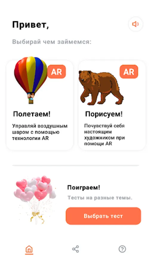 In our application you can fly in a balloon or become a real artist. And all this with the help of augmented reality technologies! And you will have the opportunity to test your knowledge and learn a lot of interesting things with our thematic tests!