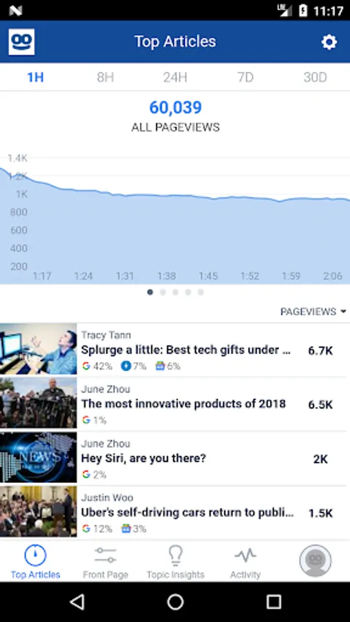 Newsroom Mobile is the fastest way for you to see how your articles are performing and gain crucial insights into the trending topics on the web.