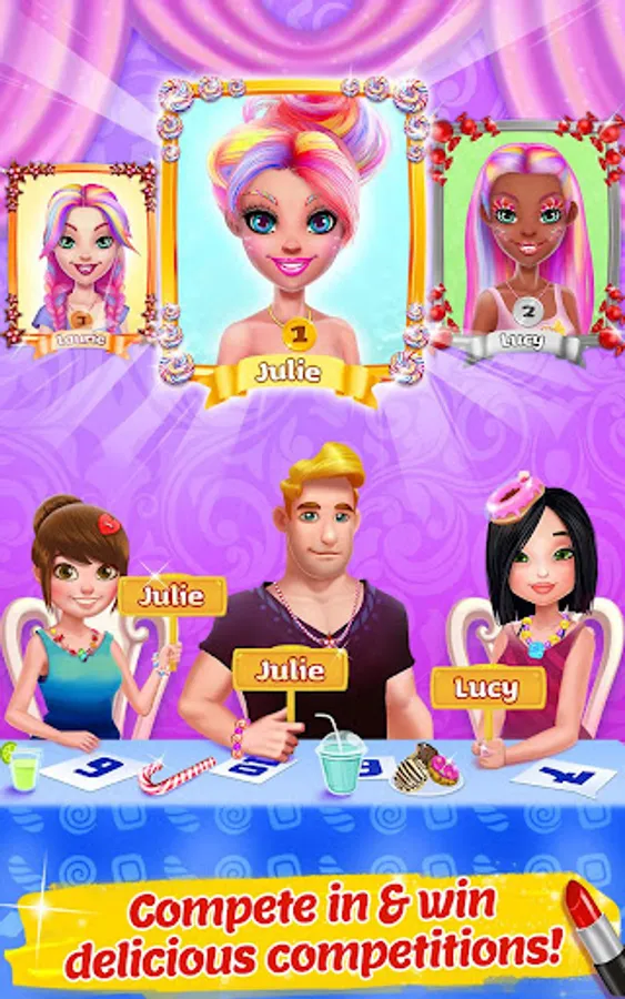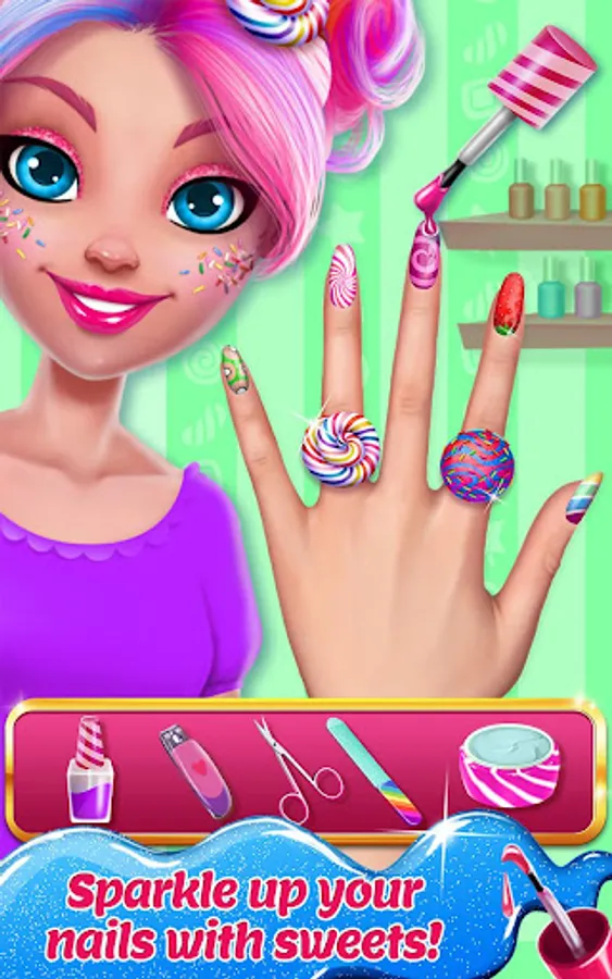 Hey makeup games lovers, it’s CANDY MAKEUP time! Become a makeup stylist in this girl game and give your clients the sweetest makeovers ever in your makeup studio! Play kids makeup games, use a makeup kit to style your models with cotton candy hairstyles, glitter lips and eye art! Give the most delicious mani-pedis ever in this girl game and top them off with rainbow sprinkles in your beauty nails salon!