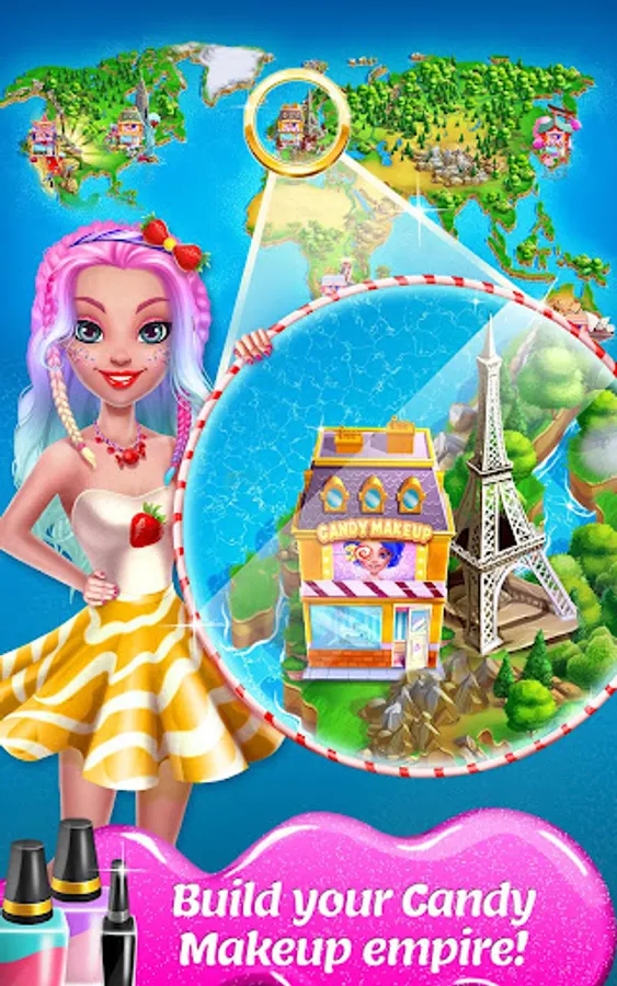 Indulge in the joy of kids makeup games while immersing yourself in a whimsical candy parlor beauty care adventure!