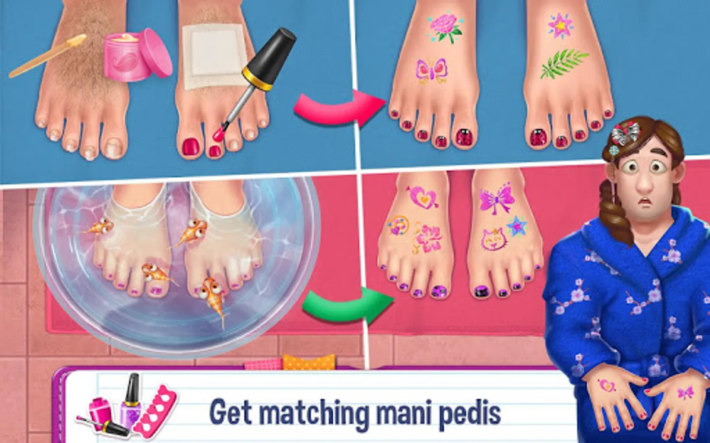 Oh no! Mommy's away, and now clueless Daddy's in charge! In this funnest of all messy house cleaning games, help Daddy stop the messy house from falling to pieces! Clean the house, whip up some delicious dinner and don’t forget to leave some mani pedi time with Daddy!