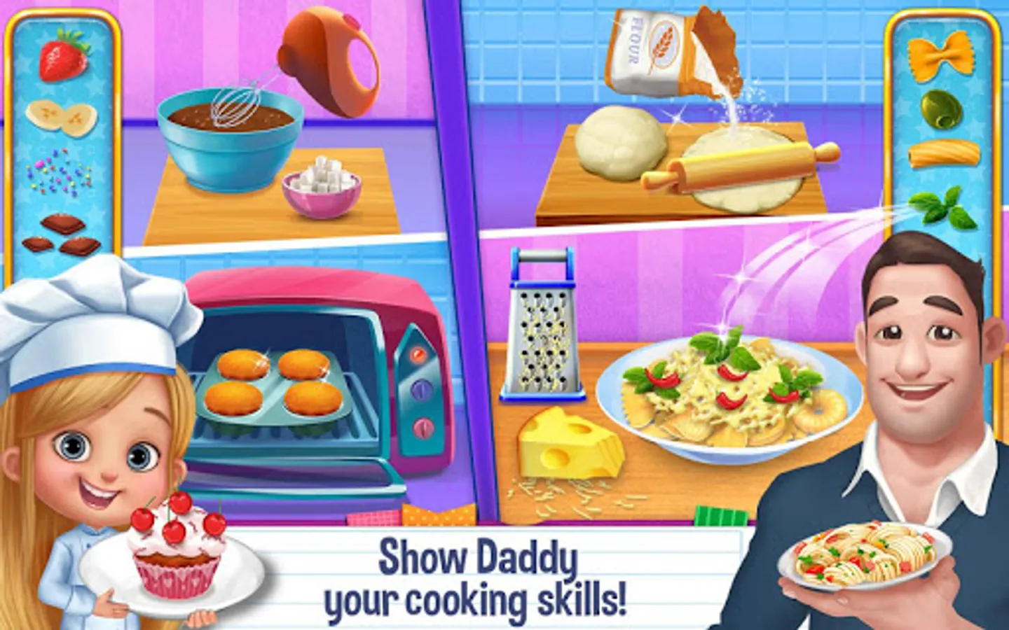 > Chore time! Clean the fridge, iron the wrinkly clothes, make the yucky toilets sparkly clean, and wash the nasty dishes… turn the messy house into squeaky clean house! > Go food shopping so you can show Daddy your amazing kitchen skills. Make yummy pasta, bake cupcakes and enjoy mouthwatering ice cream. Show Daddy that girls aren’t the only ones who could be good in the kitchen - Daddy’s can rock the kitchen too!