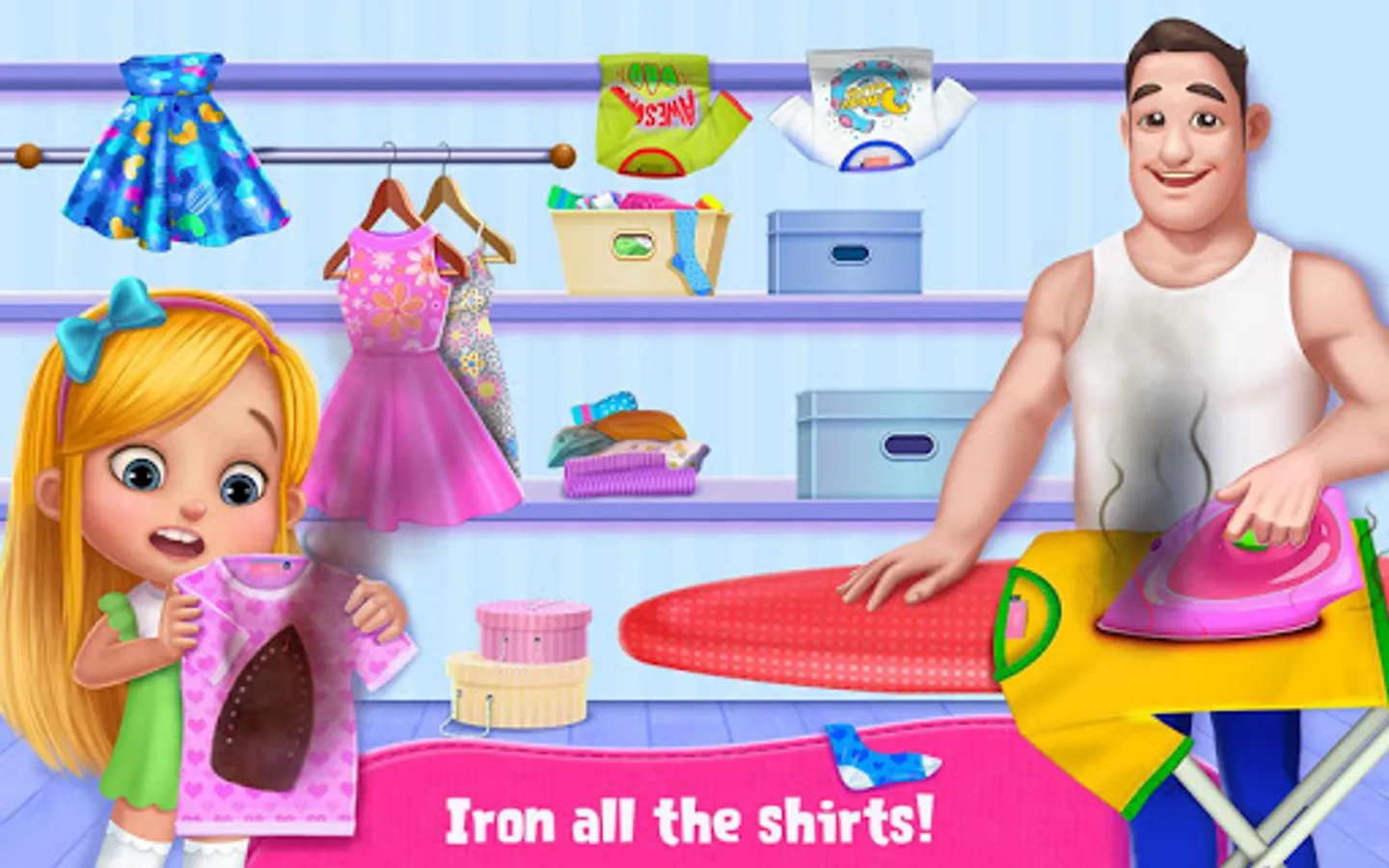 Usually your parents take care of you… but now you get to take care of your daddy! Silly Daddy can't get anything right! Help Daddy clean up & organize the messy house! House cleaning can really be fun, we promise! Be the best little helper around with tons of fun-filled & engaging home activities! Wash dirty dishes, prepare dinner, iron the laundry, tidy up the living room and more! It’s time to take care of Daddy!