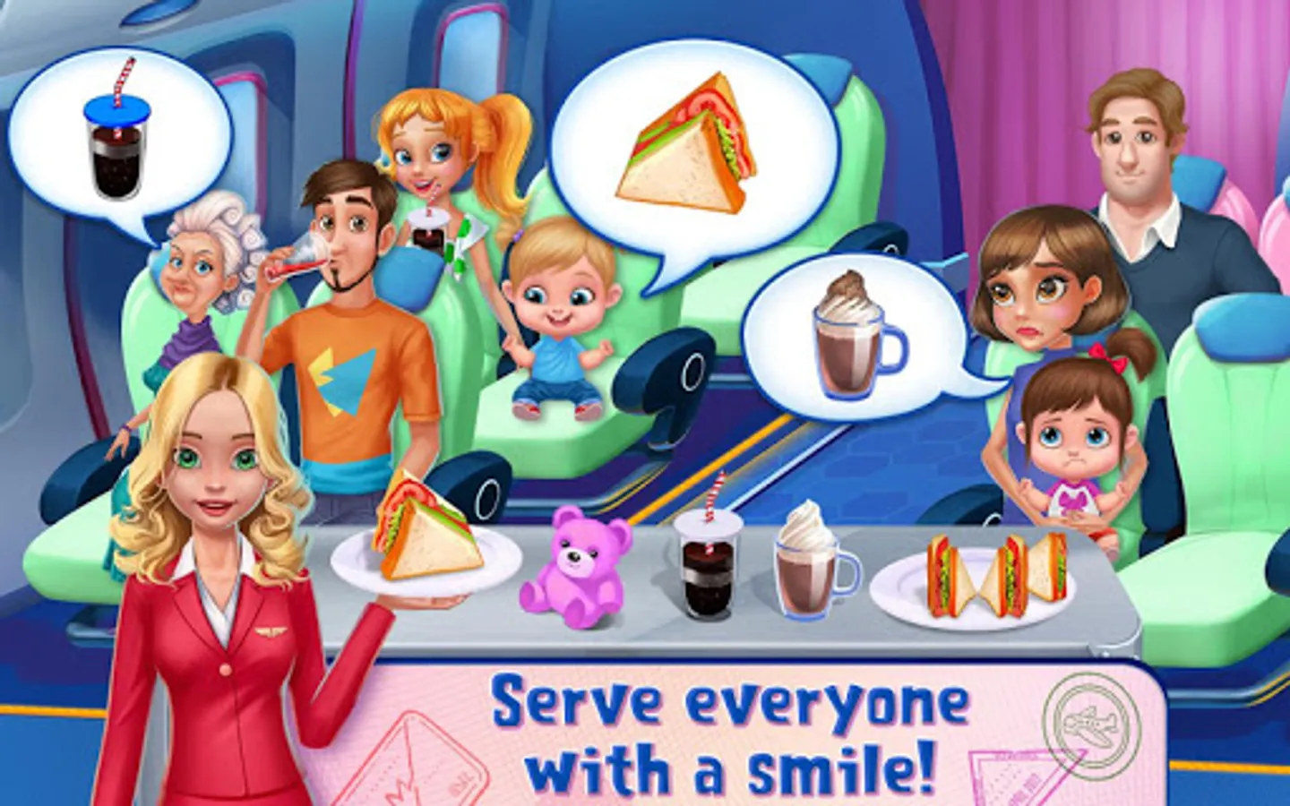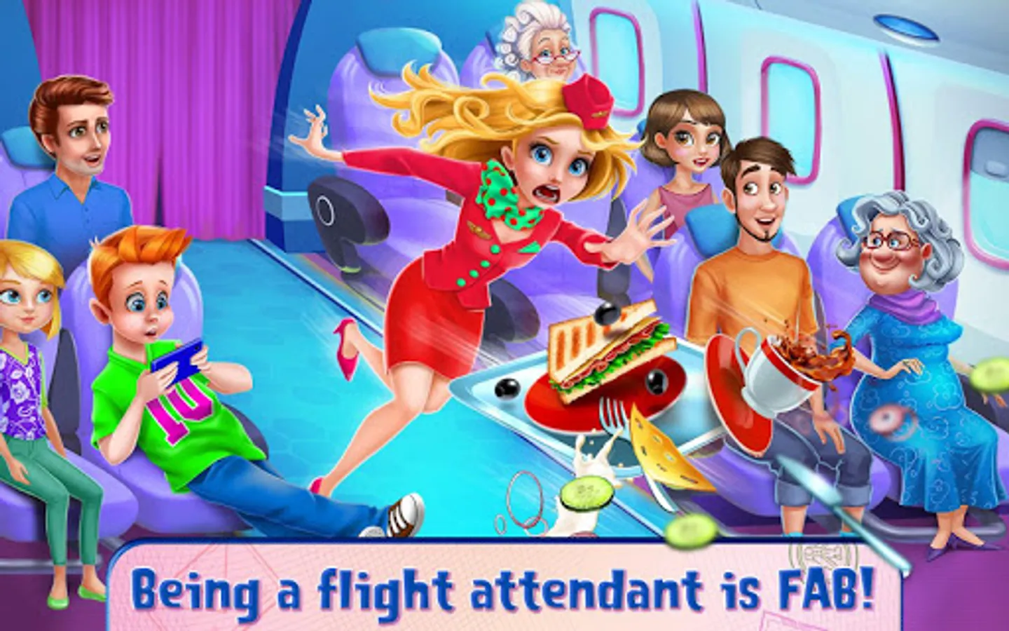 Get ready to be the best airplane flight attendant the sky has ever seen! Keep the passengers happy and serve them with a smile! Dress up in a cute uniform, travel the world and enjoy a fab flight attendant lifestyle!