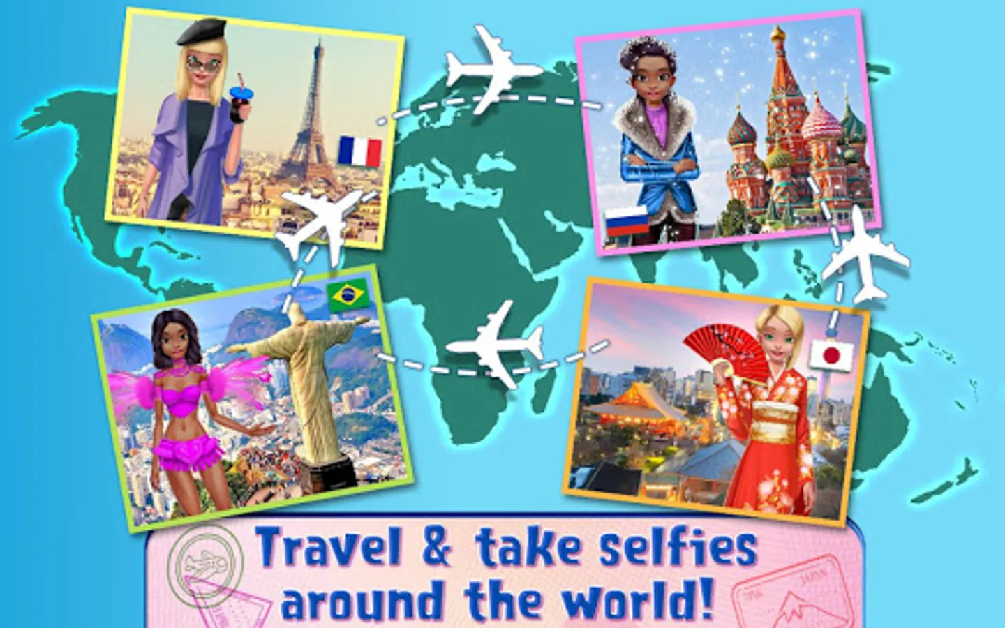 > Visit exotic destinations like Paris, Rio, Moscow and Tokyo! Dress up and take selfies at each place!
