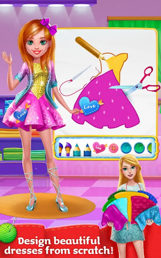 > Help Lucy the fashion designer open up her dressmaker shop!