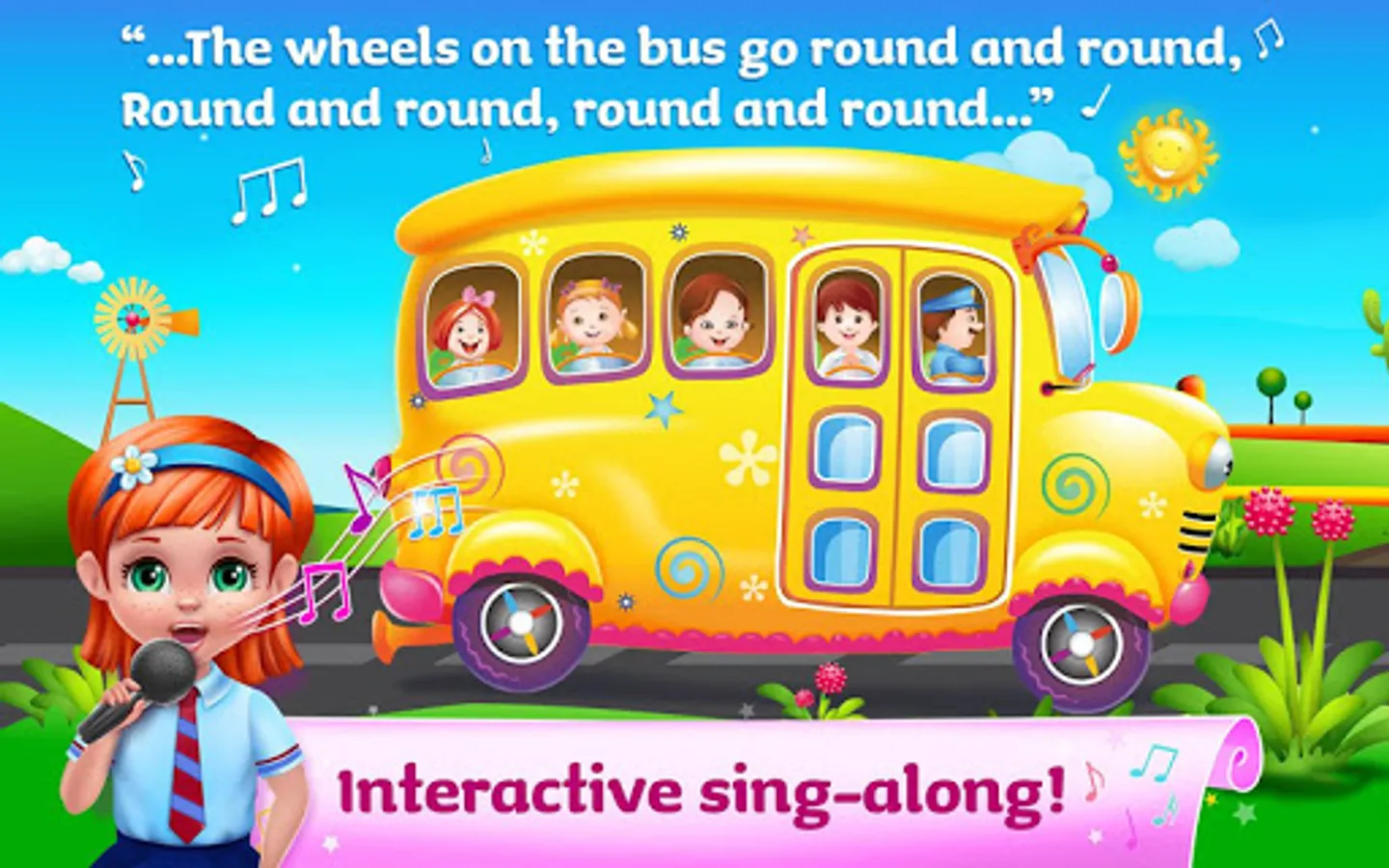 Sing the classic: “Wheels on the Bus” as you watch an animated, interactive rich song and dance experience.