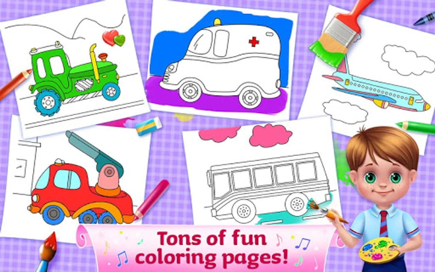 Enjoy The Wheels on the Bus coloring page and learn the different names of transportation vehicles.