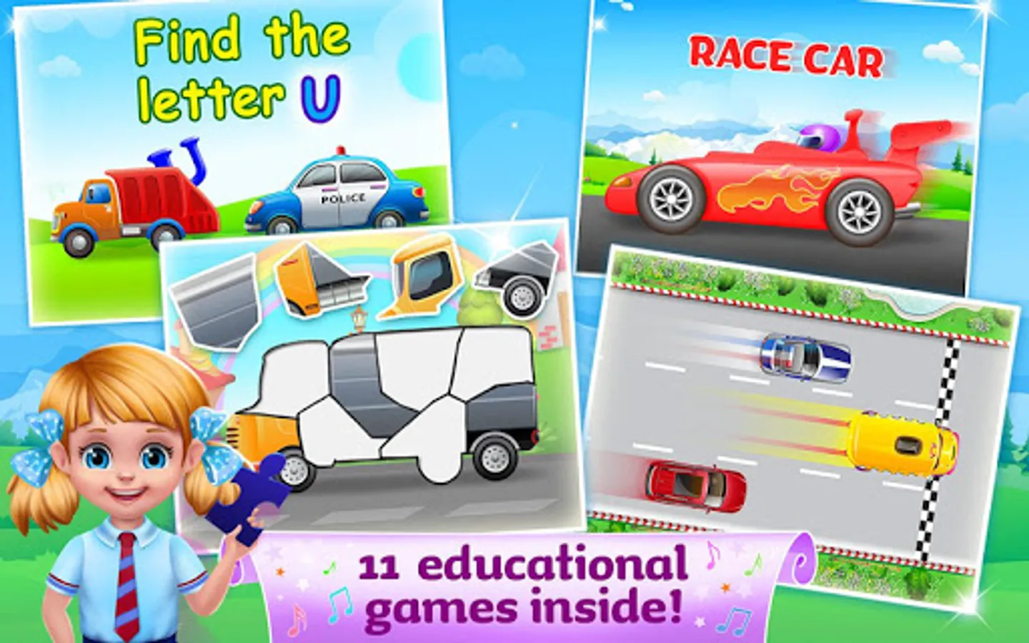 Intuitive, educational memory matching games. Match pairs of cars to learn their sounds and names.