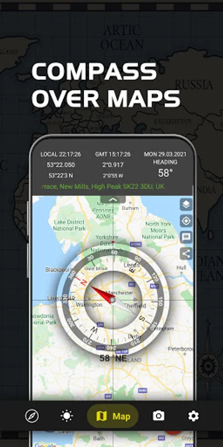 Digital Compass - Compass Maps is an accurate compass and a great tool for any outdoor activities like traveling, picnicking, camping, hiking or boating and find your way on the map..It gives precise location info just like a real compass. It’s handy, gorgeous and it is one of the most compelling magnetic and directional compass apps for Android