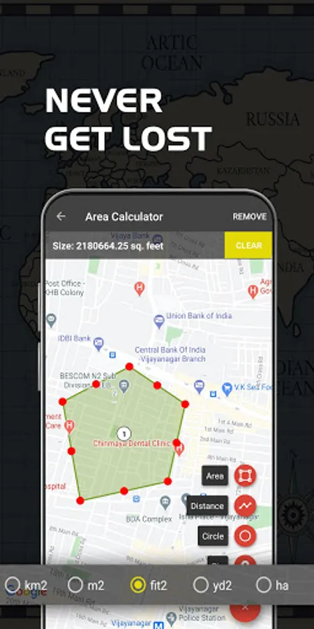 - You can draw many different shapes like polygon, polyline and many more on the google map with editable mode and area calculator for land, supported m2, km2, fit2 and ha