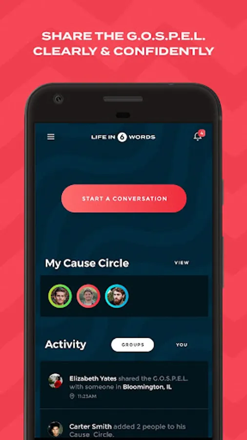 This interactive, engaging, faith-sharing app provides you with a bridge for naturally initiating spiritual conversations. Use it to walk someone through a clear, visually compelling explanation of the gospel and invite them to put their trust in Jesus, using 6 words!