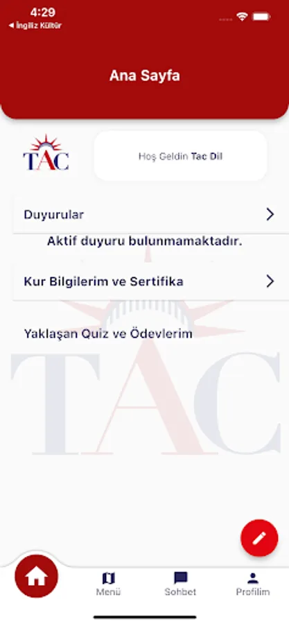 • Using the TAC Language Course mobile application, you can chat and write with your friends at the same level.