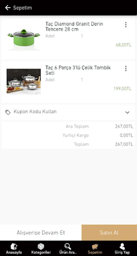 With Taç Shopping App, you can place an order at any time and be informed of the campaigns.