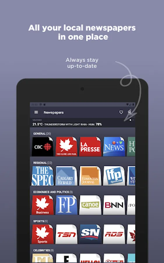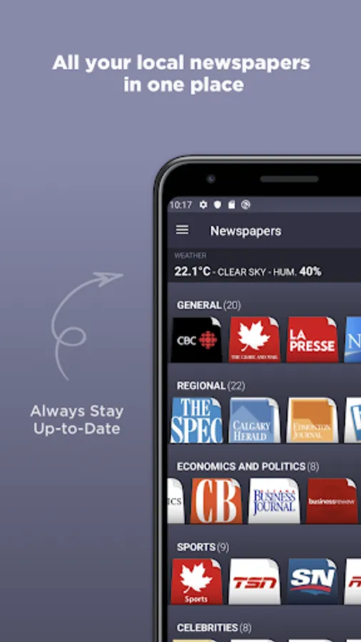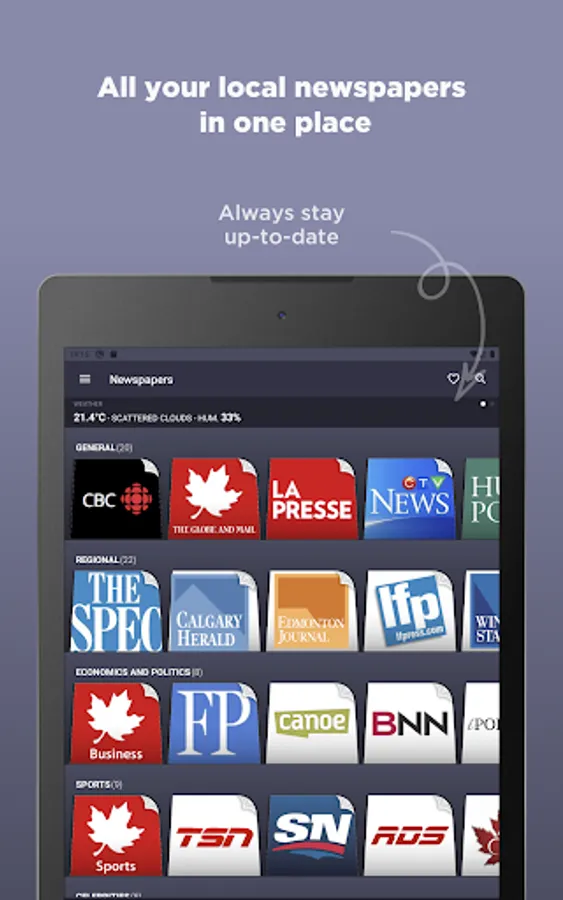 Canadian Newspapers is an application that groups all news of the most important newspapers and magazines of Canada. With this application you can have in one place, all the information you want without browse individual websites of each newspaper or magazine.