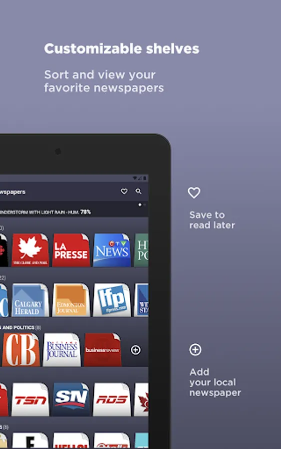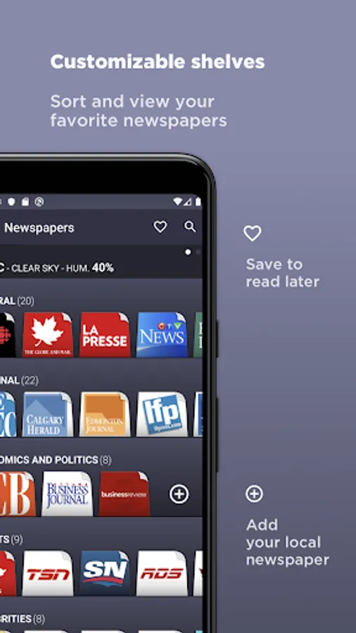 ◉ Add newspapers to your wish in any shelf.