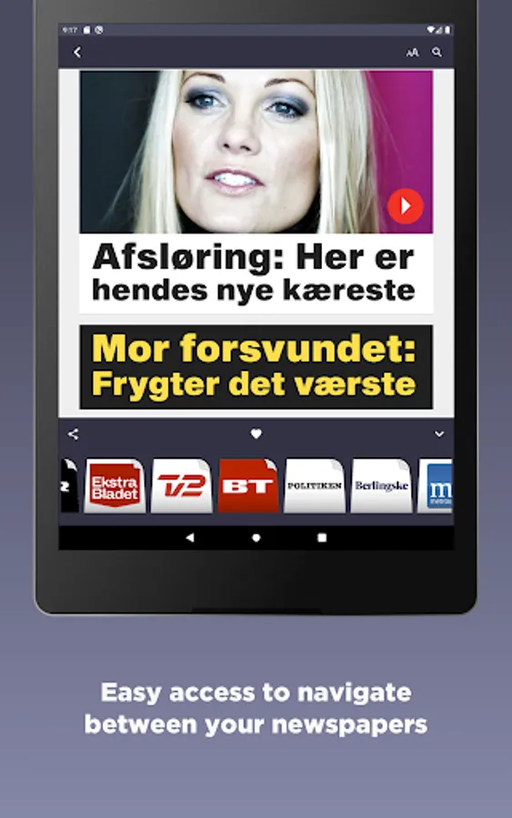 The logos and content of each newspaper or magazine are the exclusive property of the same. Danish Newspapers only use them in order to be recognized by readers who use the application, and access the web pages of each newspaper.