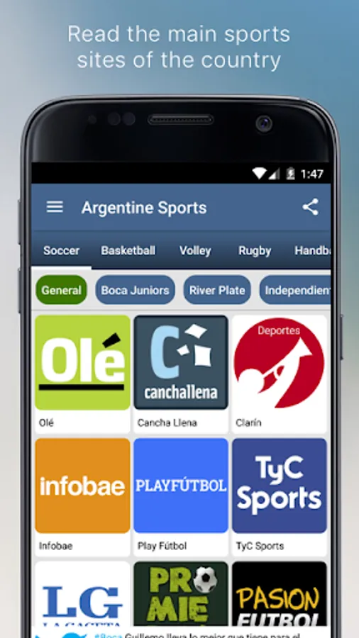 Argentine Sports is an application that groups all news of the most important sports sites of Argentina. With this application you can have in one place, all the sport information you want without browse individual websites of each sport or club.