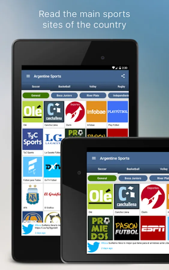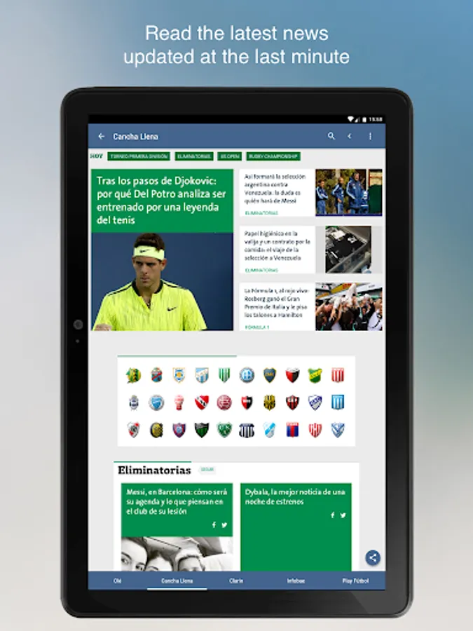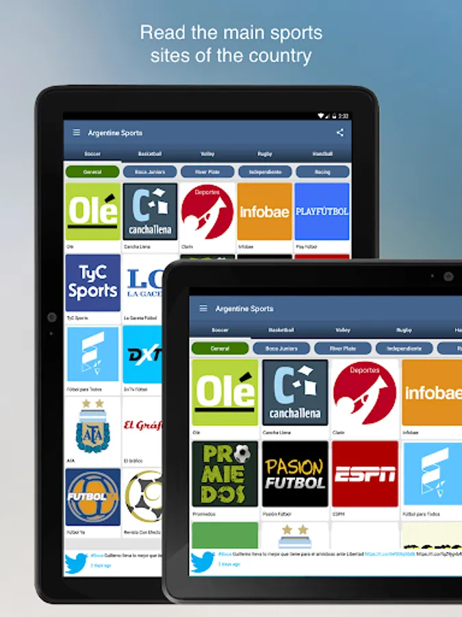 The logos and content of each site are the exclusive property of the same. Argentine Sports only use them in order to be recognized by readers who use the application, and access the web pages of each site.