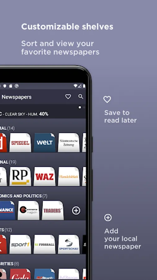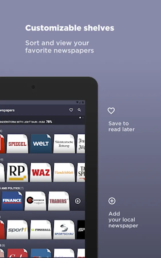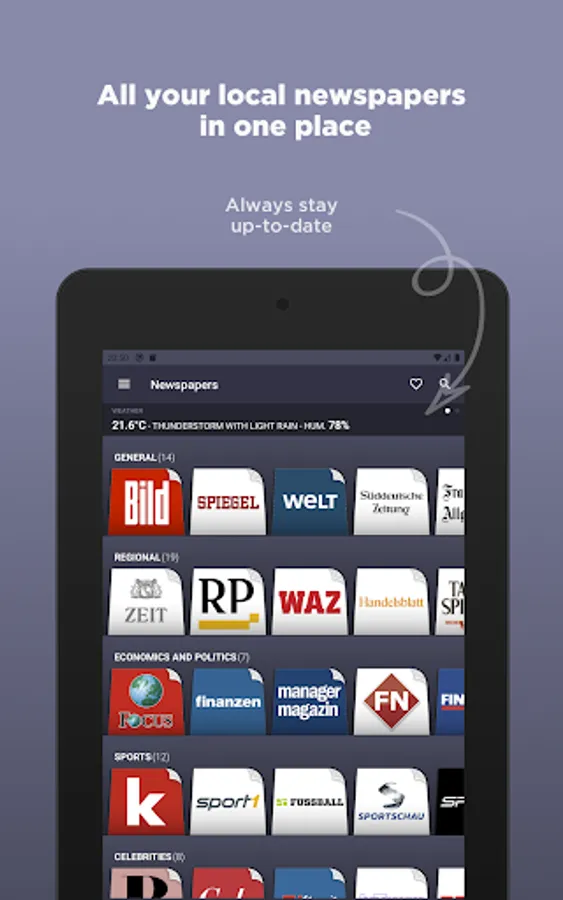 German Newspapers is an application that groups all news of the most important newspapers and magazines of Germany. With this application you can have in one place, all the information you want without browse individual websites of each newspaper or magazine.