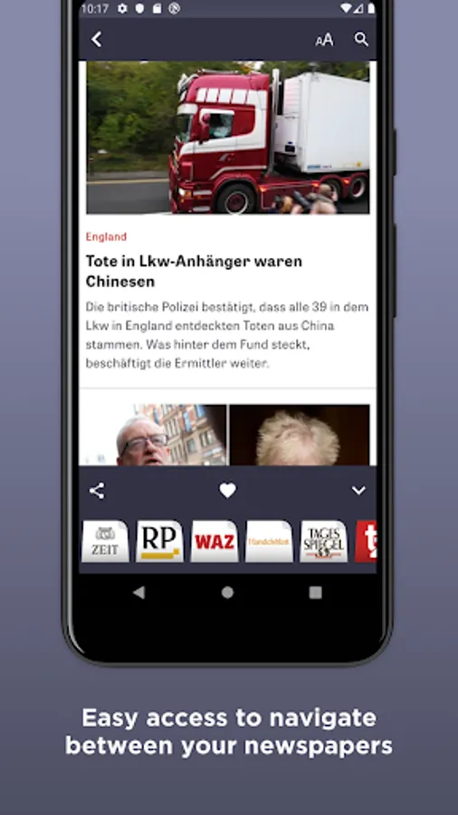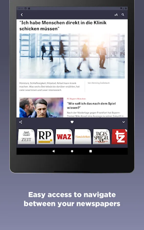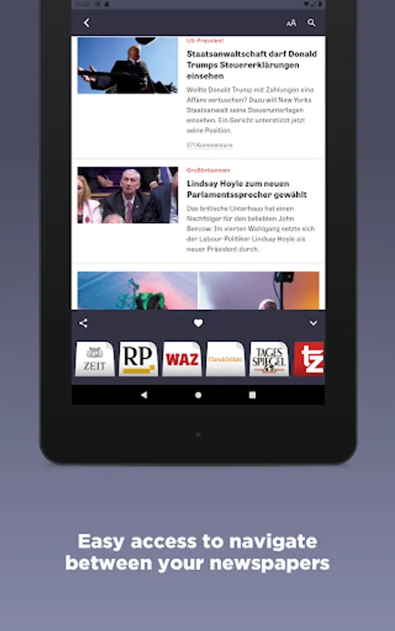The logos and content of each newspaper or magazine are the exclusive property of the same. German Newspapers only use them in order to be recognized by readers who use the application, and access the web pages of each newspaper.